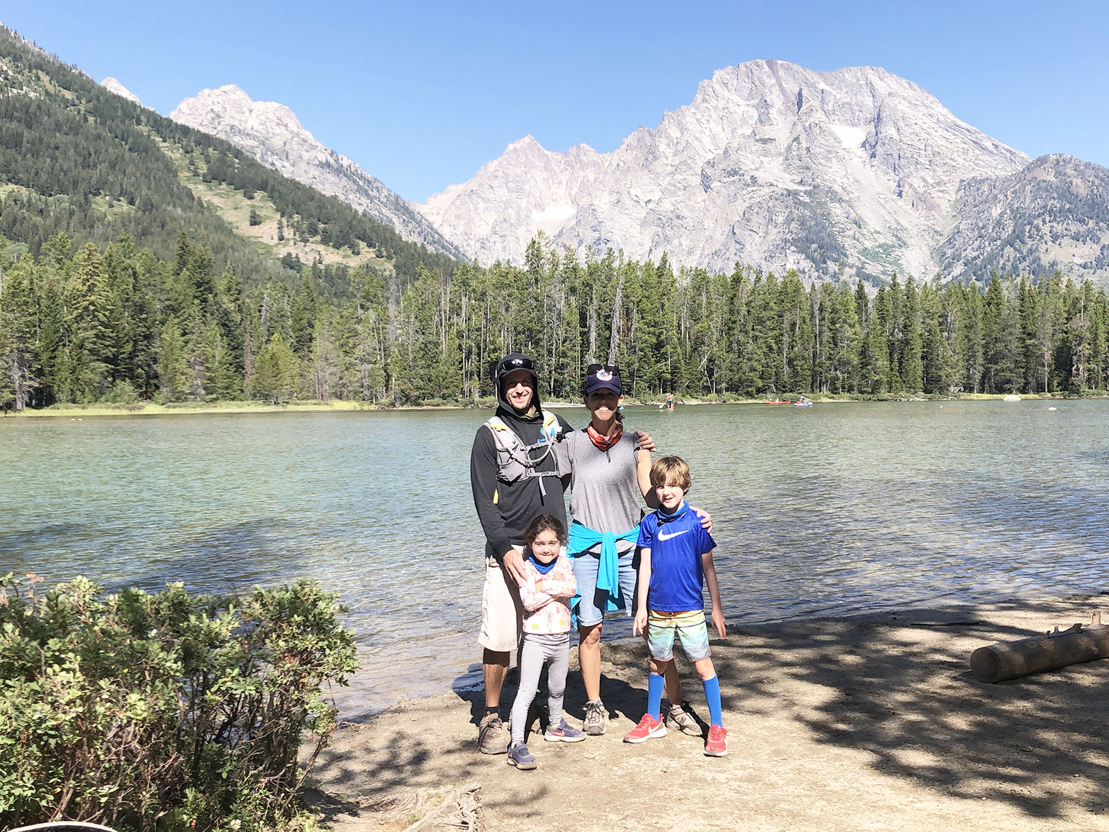 One of our favorite moments was wading to the very middle of String Lake. It is very shallow and the water is relatively warm considering all this water comes from melted snow. We spent an hour or so splashing around in the lake, swimming and then we hiked the mile or so back to the car. Jenny Lake was another amazing adventure but our hike back to the car was cut short by a Moose in the middle of the trail.